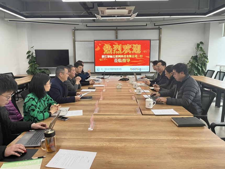 在隨后交流當中,浙江智咖互聯網科技有限公司CEO駱江建講述了浙江智咖發展歷程、主要產品和未來戰略規劃,希望與上海蜂威以及研究院合作,打通從科研到成果轉化的痛點堵點,筑牢“產學研”通融的戰略合作關系。長三角信息智能創新研究院常務副院長承孝敏提到“科技創新必須本著為民、惠民、利民的宗旨,堅定不移地跟著黨走,試點先行,探索形成‘基層智治’創新實踐典范”。